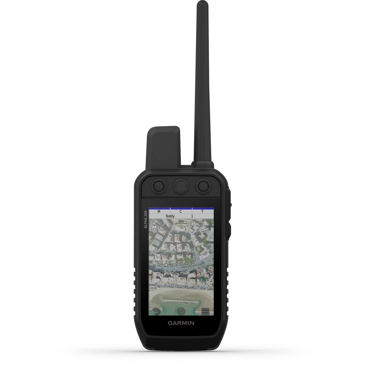 Track and train your dogs with the Alpha 200 handheld, featuring a sunlight-readable 3.5” capacitive touchscreen and user-friendly six-button design.